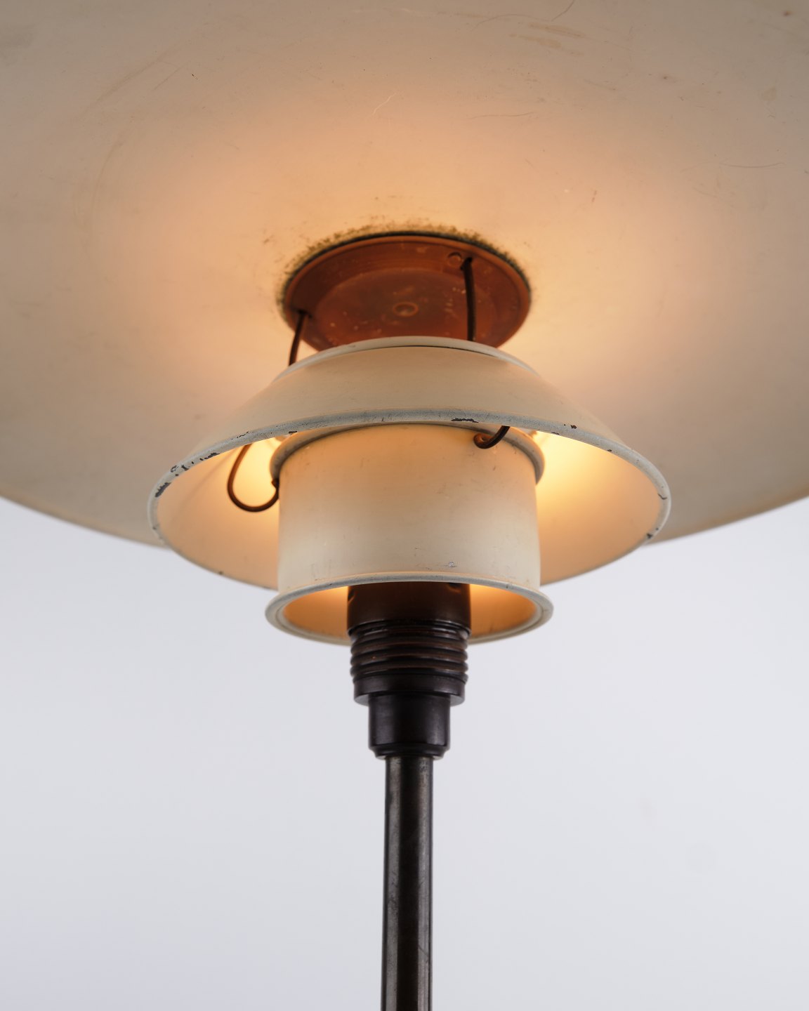 PH 3,5/2,5 bordlampe designet af Poul Henningsen og fremstillet af Louis Poulsen i 1930’erne. Lampen er udført med hvidmalede metalskærme, som sikrer et blødt og jævnt fordelt lys.