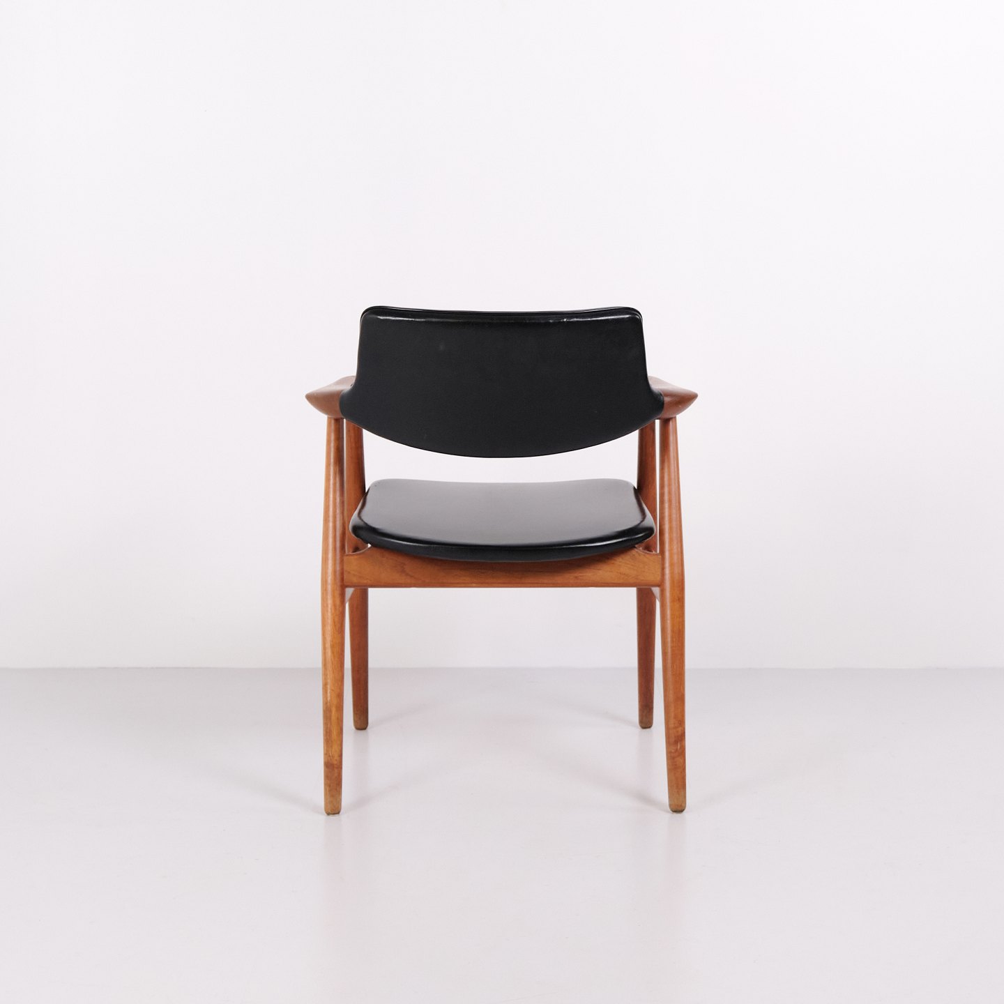 Sæt af 6 GM11 spisestuestole designet af Svend Aage Eriksen for Glostrup Møbelfabrik i 1960’erne. Stolene er udført i massiv teak med sort læder på sæde og ryg. Model GM11 er kendt for de organiske linjer, let svungne armlæn og høj siddekomfort. Et klassisk dansk design med elegant snedkerarbejde og flotte proportioner, velegnet til både spisebord og mødelokale. Sættet sælges kun samlet.