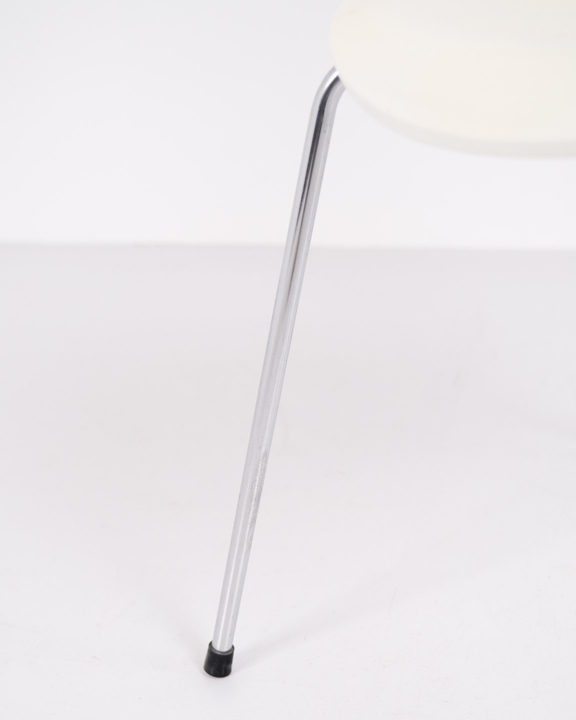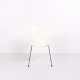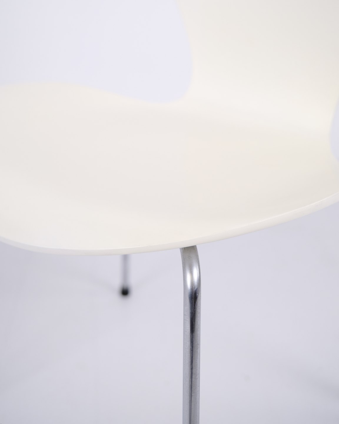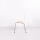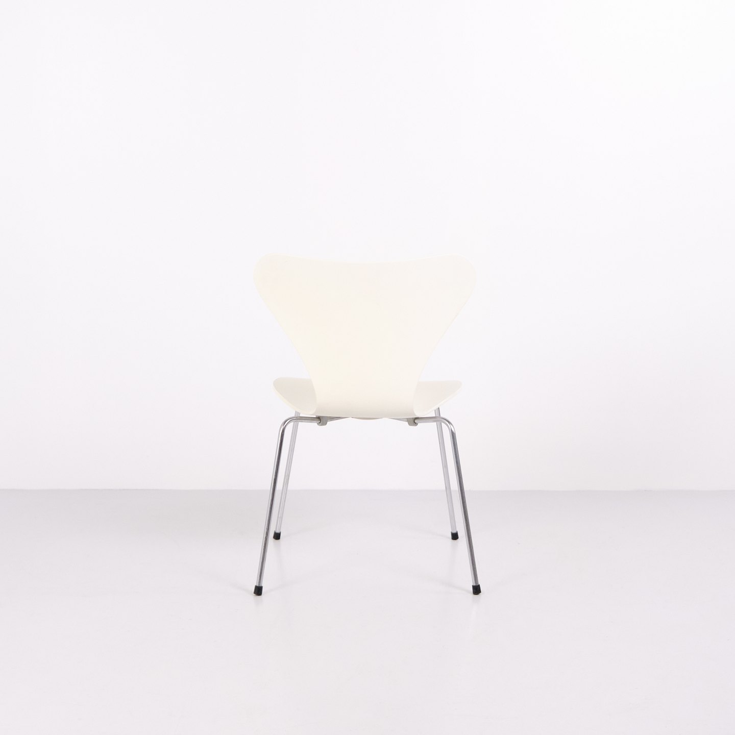 Sæt af 6 Syverstole model 3107 designet af Arne Jacobsen for Fritz Hansen. Modellen blev introduceret i 1955 og er en videreudvikling af Myren fra 1952. Stolen er udført i formspændt finér med hvidlakeret overflade og forkromet stålrørsstel. Den karakteristiske syvtalsform gjorde modellen til en af de mest producerede stole i dansk designhistorie. 3107 har været anvendt i private hjem, restauranter, kontorer og offentlige interiører verden over og produceres fortsat af Fritz Hansen. Sælges kun samlet.
