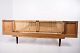 — Materiale: Fineret teak, massiv teak, sjeneflet, sort kunstlæder og messing