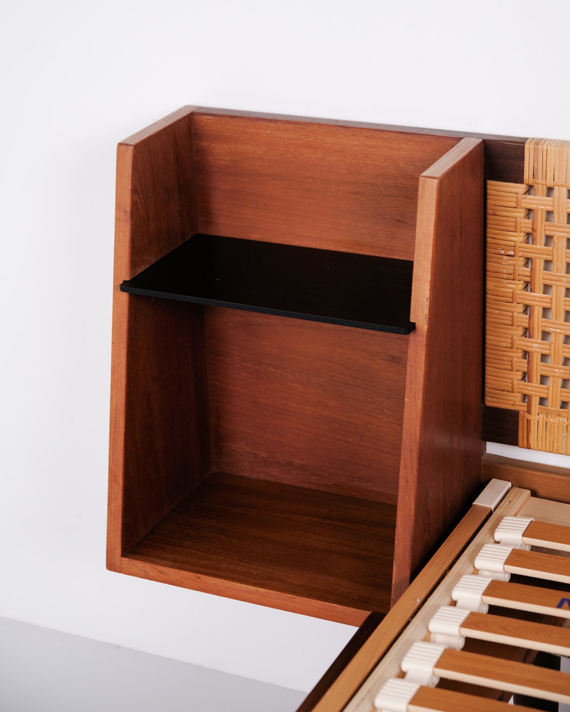 — Detaljer: Integrerede sengeborde og glashylder