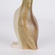 Keramisk pingvinfigur udført i glaseret stentøj fra 1960’erne. Figuren har enkel skandinavisk form med lyse glasurer og brun dekoration.
